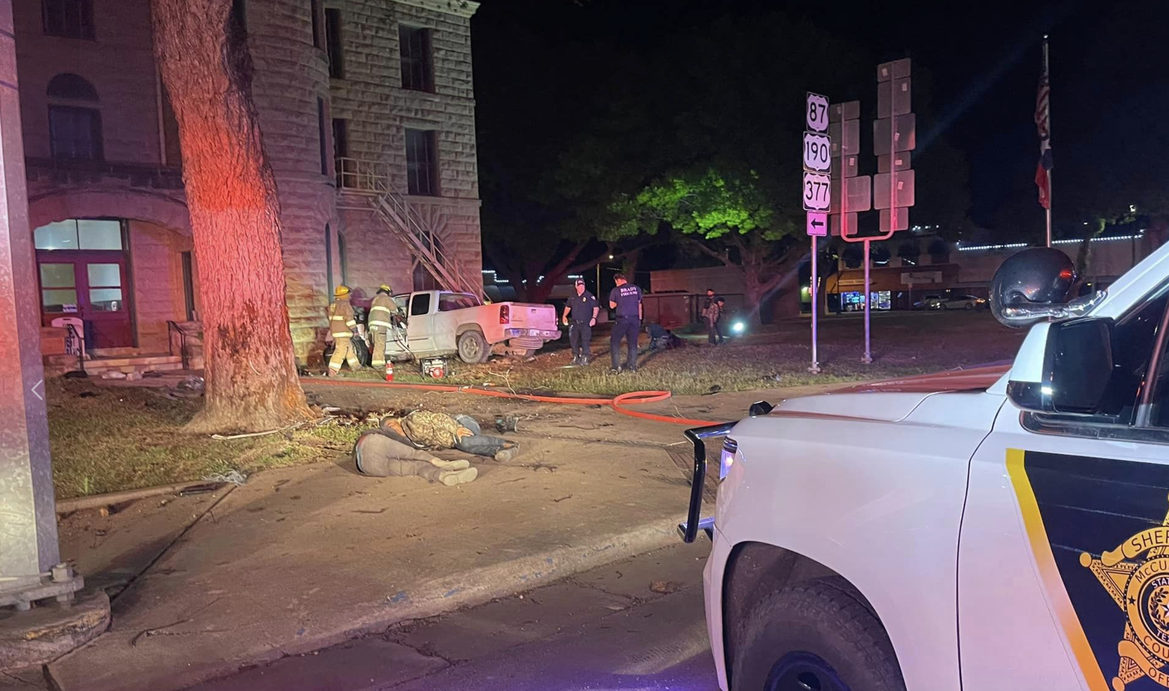 A chase with illegal aliens ended badly as the truck full of Honduras hit a tree in from of the McCulloch County Courthouse, nearly killing everyone involved.