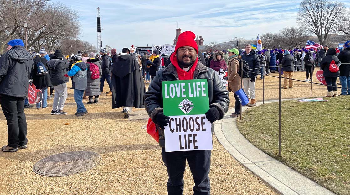 On the eve of the 49th anniversary of Roe v. Wade, pro-life supporters gathered at the nation's capital to March for Life. One of the voices in the crowd was Rev. Bala Anthony Govindu, of the St. Charles Parish in Eden.