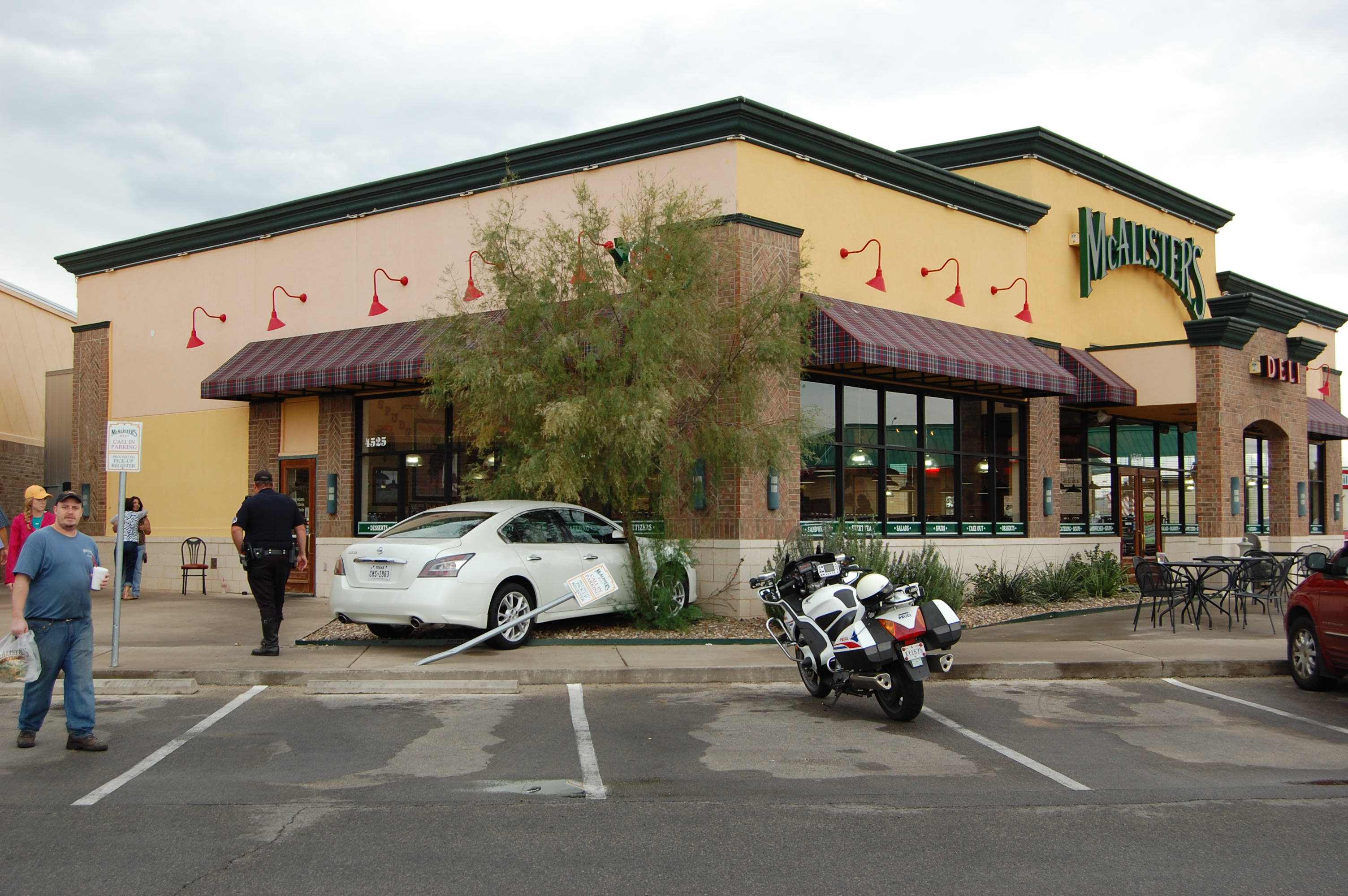 For the second time in a month, a vehicle has collided with a local business that doesn’t have a drive-through. This time, McAlister’s at 4525 Sherwood Way was the victim.