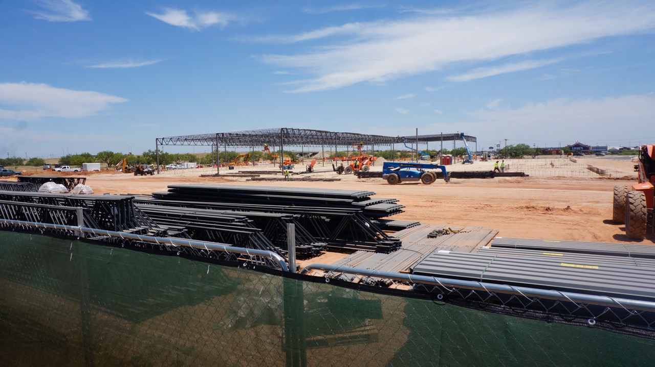 SAN ANGELO, TX — The outline of the new H-E-B grocery store is taking shape today, as structural steel is now visible from Sherwood Way in San Angelo.  The new store location is across from Wal-Mart and next to the Chick-Fil-A in the 5500 block of Sherwood Way.