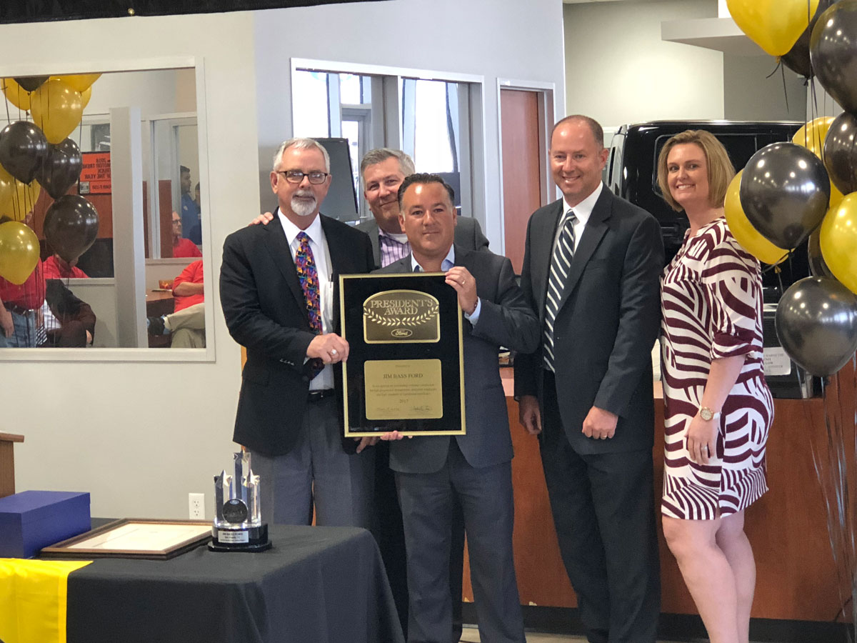 The top five percent of Ford Dealerships are recognized by the President’s Award. But there is more. Jim Bass Ford posted year-over-year record sales growth, increasing 38 percent from 2015 to 2016, and increased again 24 percent from 2016 to 2017. “Double-digit growth two years in a row is unheard of, and it’s because of all of your hard work and being a positive part of this community,” said Ford Motor Company’s Sales Operations Manager Heather Clark.
