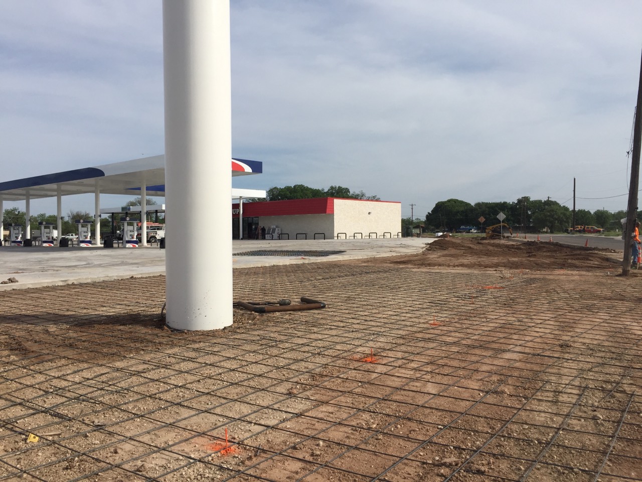 Workers on Tuesday were pouring concrete behind the new store building the parking lot. Pct. 3 County Commissioner Rick Bacon said recently the current ALLSUP’S across the street will be razed and the land will be used for a parking lot.