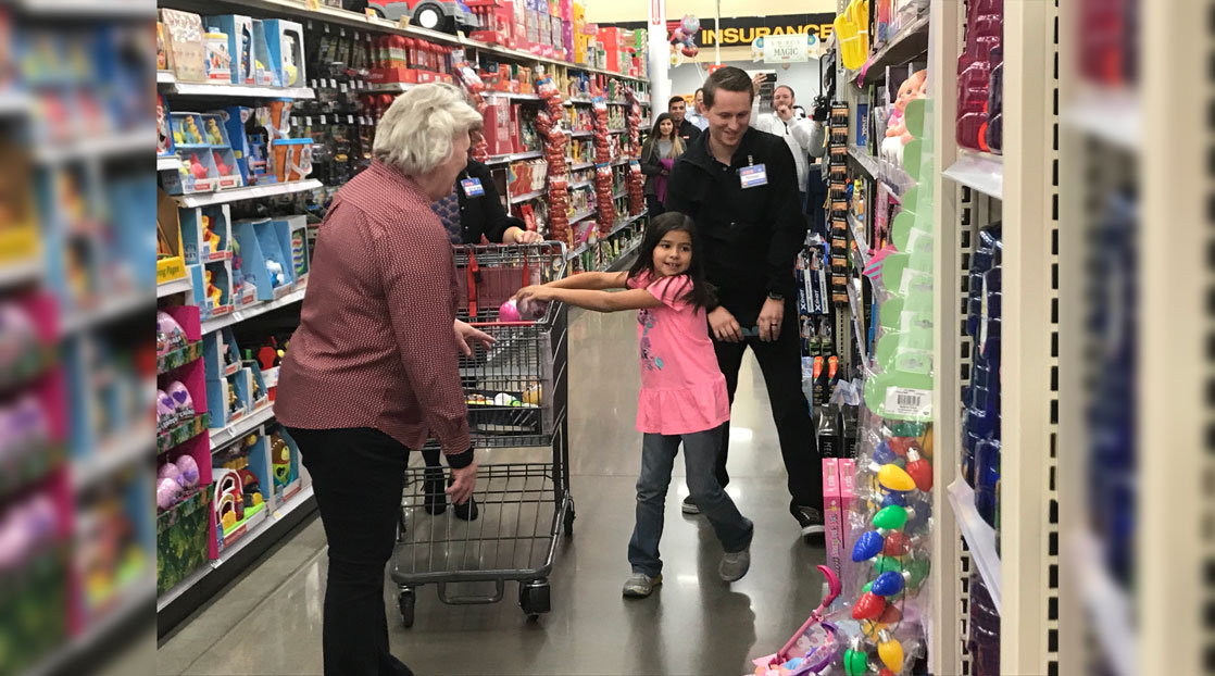 The shopping spree was Friday at the H-E-B at 5502 Sherwood Way.