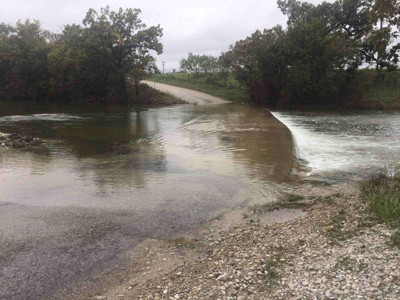 Now, residents are forced to cross the Mineral Wells low water crossing with a large volume of water still flowing over the bridge.  There is no other way out of the subdivision.