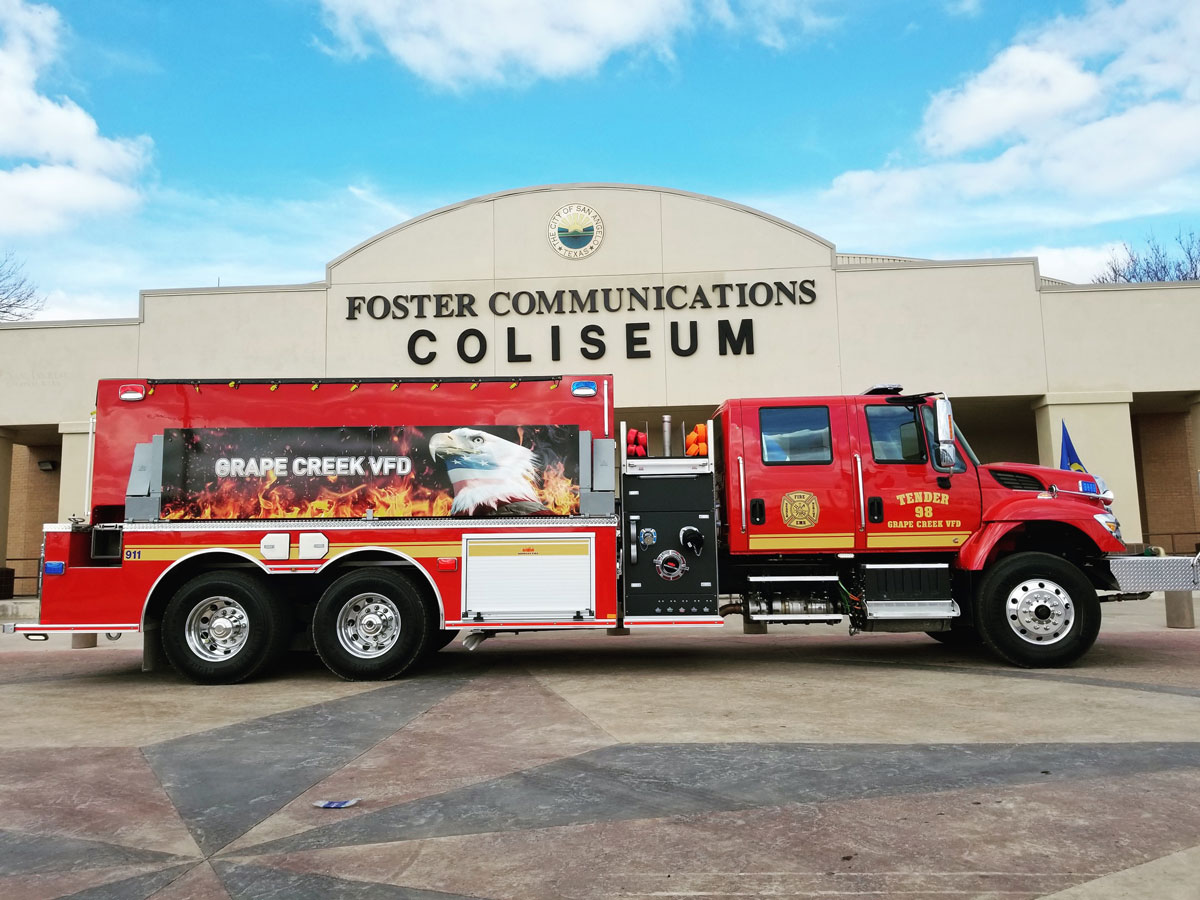 SAN ANGELO, TX — The Grape Creek Volunteer Fire Department procured a new fire truck. The truck, labeled “Tender 98” will be placed into service Saturday in a special ceremony.