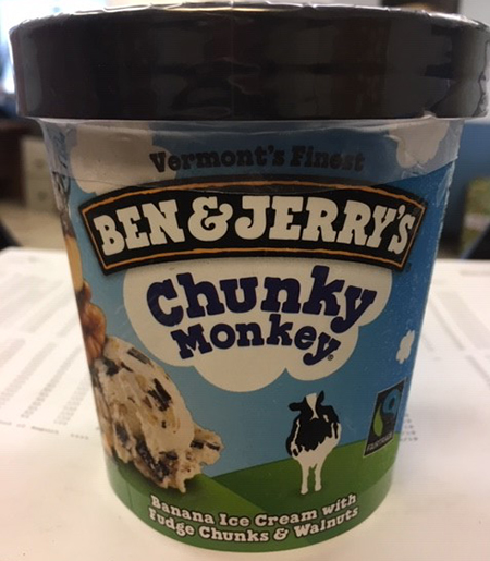 The affected Ben & Jerry’s Coconut Seven Layer Bar bulk product is sold in a tub containing 2.4 gallons with a Consumer UPC of 076840104246 and best by date of SEP1520BJ4. The affected Ben & Jerry’s Chunky Monkey pint is sold in a pint tub (473 mL) with a Consumer UPC of 076840100354 and best by dates of AUG2820BH2, AUG2920BH2, or AUG3020BH2.