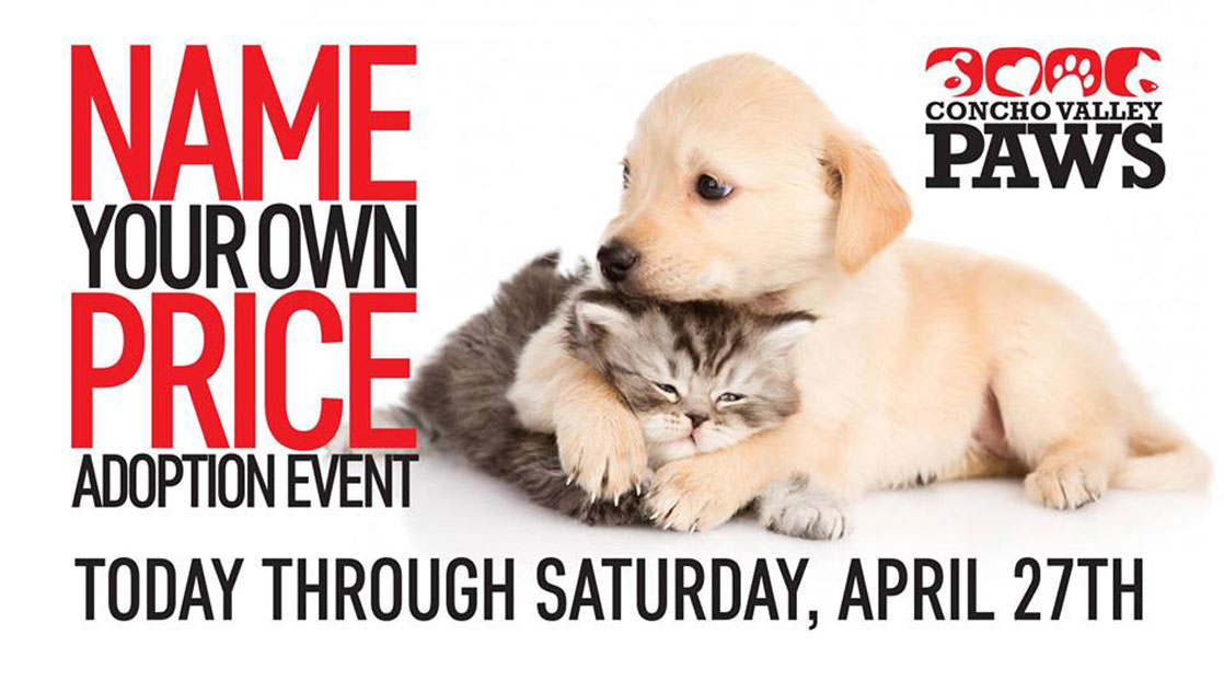 SAN ANGELO, TX -- Today through Saturday, Concho Valley PAWS will be hosting a special Name Your Own Price Adoption Event at the San Angelo Animal Shelter at 3142 US Highway 67 N.