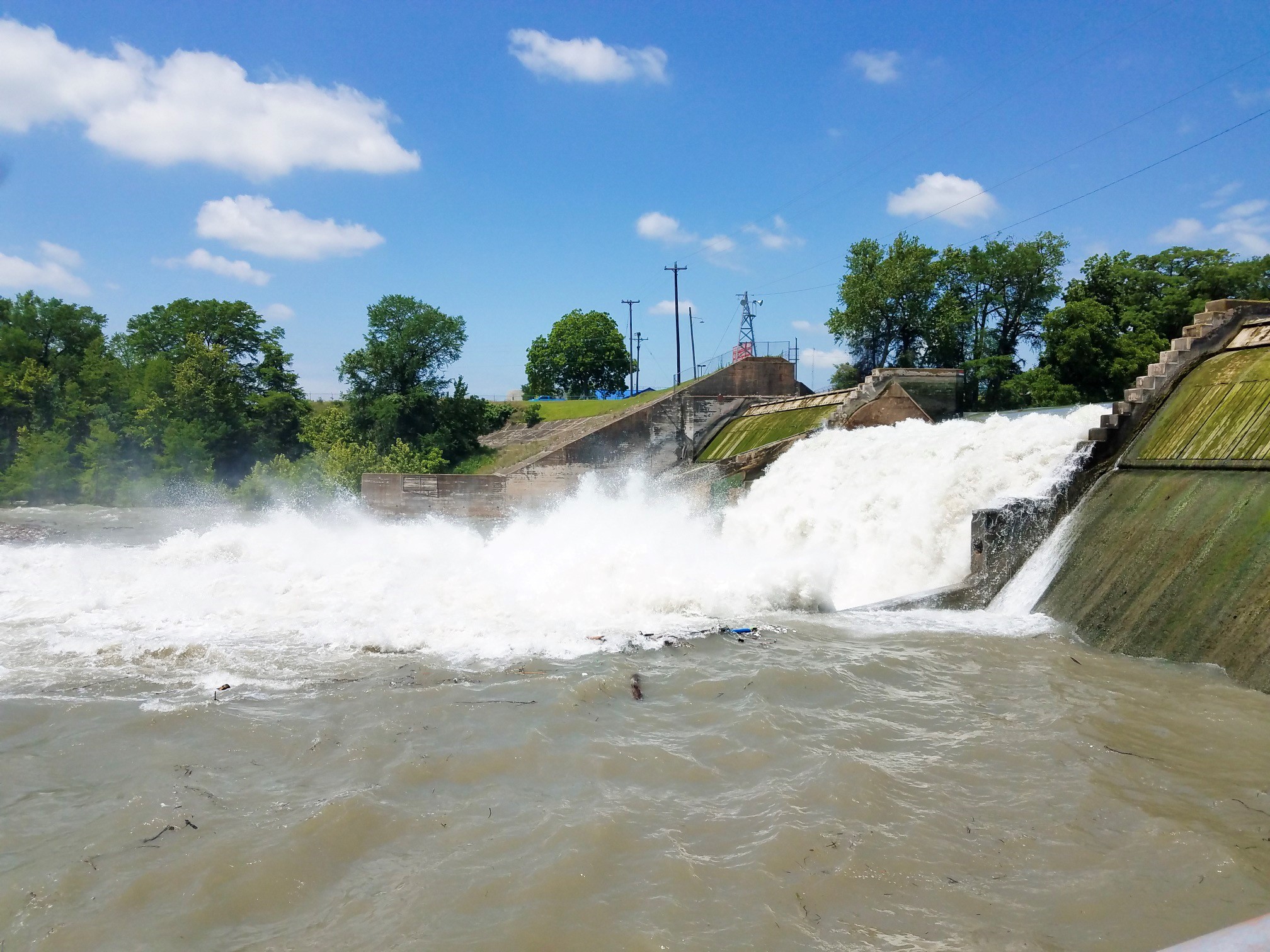 NEW BRAUNFELS, TX -- A dam on Lake Dunlap in central Texas experienced a partial failure Tuesday and the Guadalupe Blanco River Authority videoed the spectacular event.