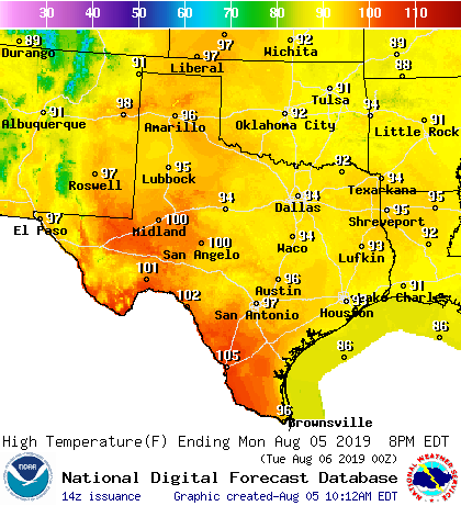 SAN ANGELO, TX -- Triple digit heat is forecast for the Concho Valley all week and there's no rain in sight.