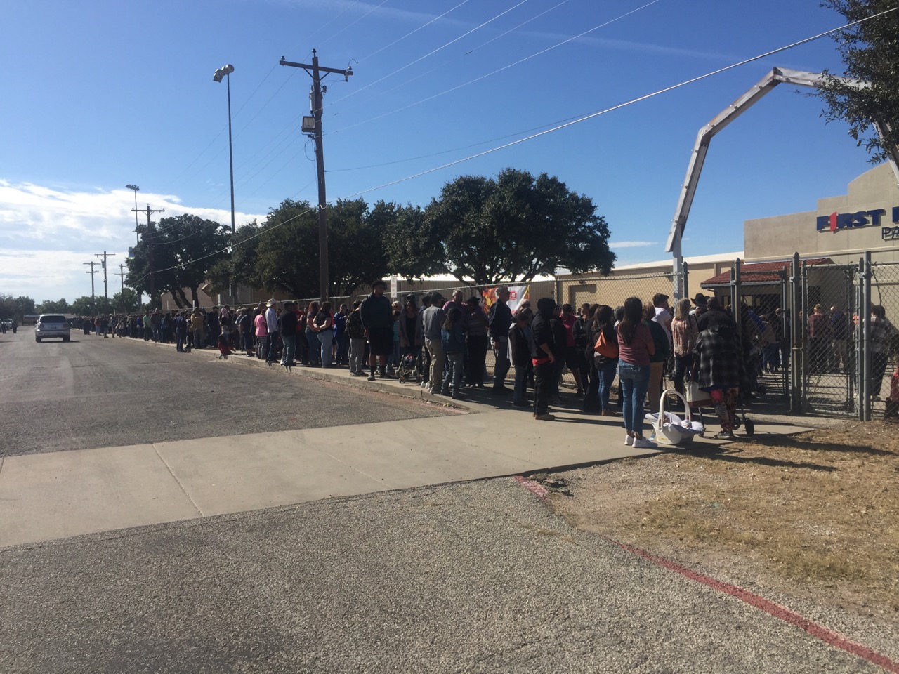 SAN ANGELO, TX – Thousands of area residents flocked to the First Financial Pavilion at the San Angelo fairgrounds Sunday for a free turkey and dressing meal with all the trimmings.