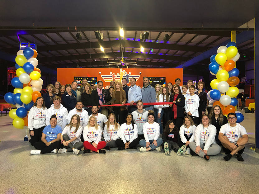 Employees and family members, community members, including Mayor Brenda Gunter and Councilman Harry Thomas, and members of the Chamber of Commerce congregated to officially welcome Ultimate Air Trampoline Park to the city.