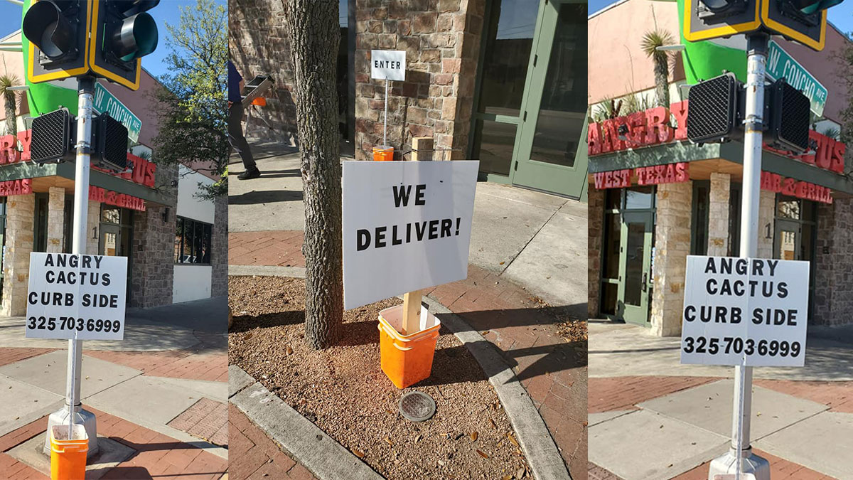 According to the Neighborhood & Family Services Director Rob Salas, on Mar. 25, the City of San Angelo received a complaint about signs that were displayed without a permit. These signs were posted in front of the Angry Cactus at 1 W. Concho Ave. to promote the only way they can stay open — that's through their carryout and delivery service.