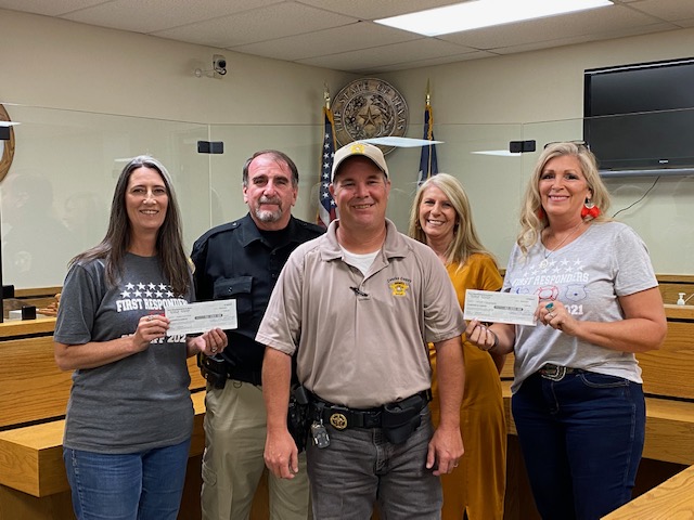 SAN ANGELO – Volunteers with the 2nd-ish annual First Responders BBQ Cook Off presented checks from the proceeds of the event to Concho County Sheriff Chad Miller Thursday during a ceremony at the Michael D. Brown Justice Center in San Angelo.