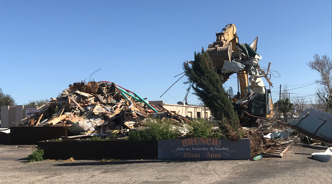About the cover photo: Rapid success and growth in San Angelo is illustrated by the original location of the Cork & Pig pictured above. A former gas station at 2201 Knickerbocker Rd. was also back in the late 2000s the location for a stand-alone and hip coffee shop named Texas Coffee. After the former Johnny Carino's Italian restaurant -- a franchise location -- was closed several doors down, the Cork & Pig partners seized the opportunity and moved down the street. Meanwhile, the former location was demolished. A Firestone store -- new building and all-- was built on the former location. This is the demolition of what was the original Cork & Pig Tavern prior to building that Firestone in a photo that was in our archive. We didn't want to give away the name of the restaurant on the socials (-;