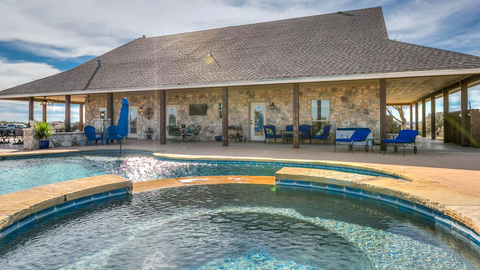 SAN ANGELO, TX — Looking for an Exotic Ranch just minutes from San Angelo? This Christoval Hilltop Ranch has it all from 100+ year old oaks, trophy White Tail, Black Buck, Audad and Axis to an amazing 4250 sq ft Custom home with 4 bedrooms 3.5 bathrooms, two primary suites, 2 fireplaces, 2 living areas, 2 offices, wrap around porch, outdoor kitchen and a beautiful in ground heated pool / Hot tub all constructed from native stone found on the property!