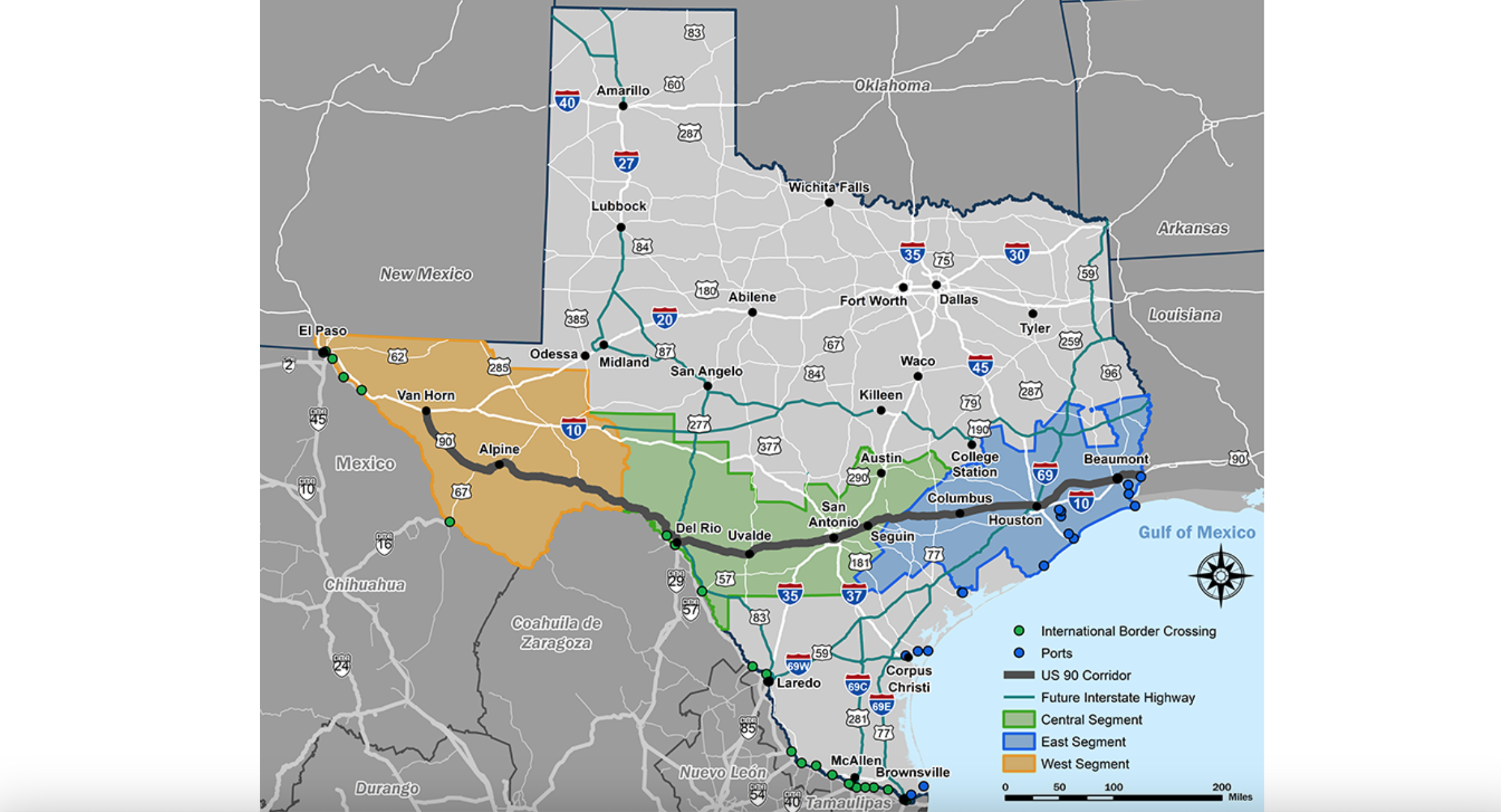 TxDOT works to deliver a safe, reliable, and integrated transportation system. The United States Highway 90 (US 90) Corridor Study was initiated by the TxDOT - Transportation Planning and Programming Division as a long term, comprehensive analysis of the US 90 Corridor from a multimodal approach. The study includes the entire US 90 Corridor from the Interstate 10 (I-10) junction in Van Horn to the Louisiana state line, approximately 763 miles.