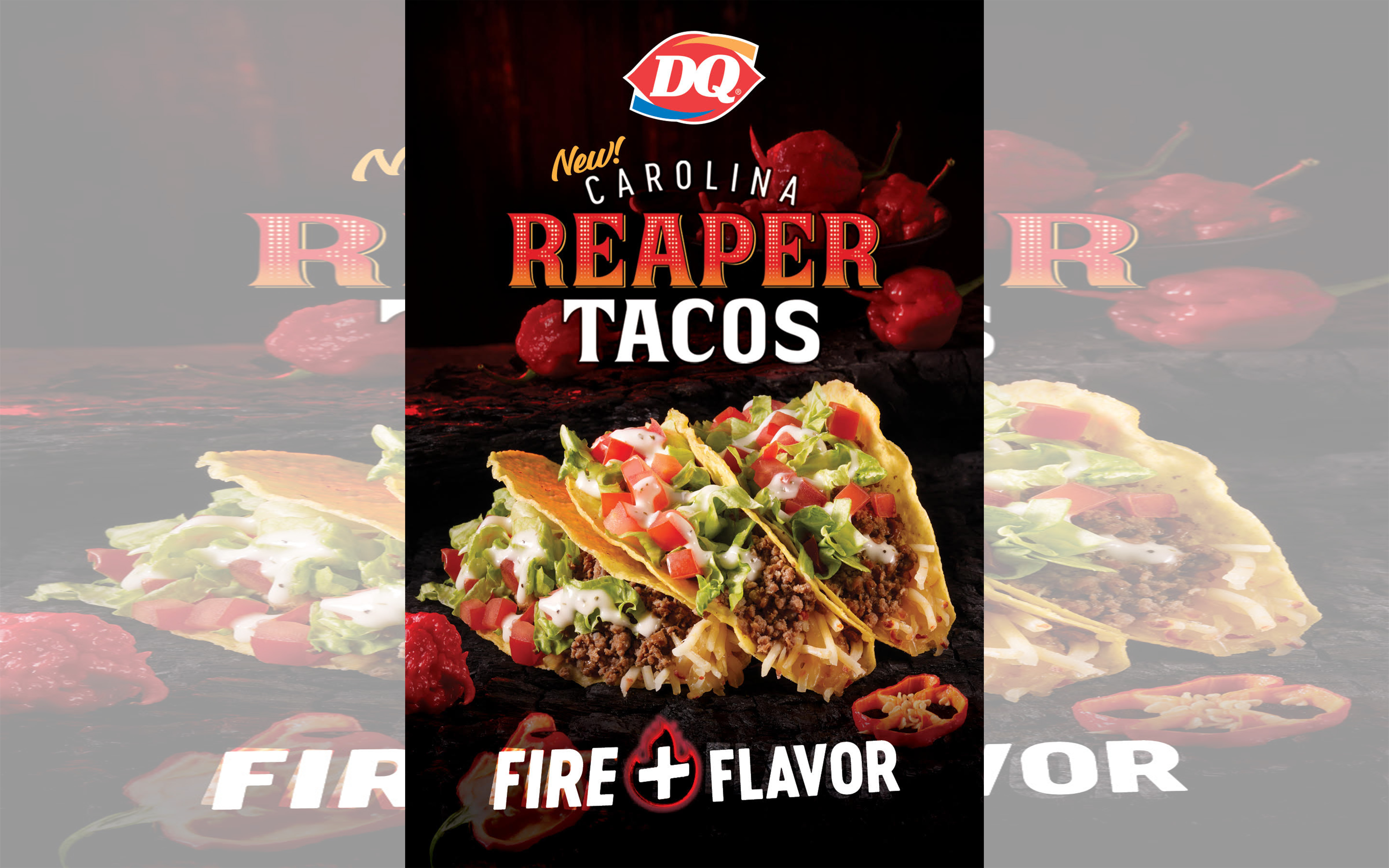 DQ states that the Carolina Reaper Taco combines the intense heat of a “thousand Texas summers with a sizzling lightning bolt from a West Texas storm, then finishes it off with the kick of a wild mustang to create the spicy deliciousness of the Carolina Reaper Taco.”