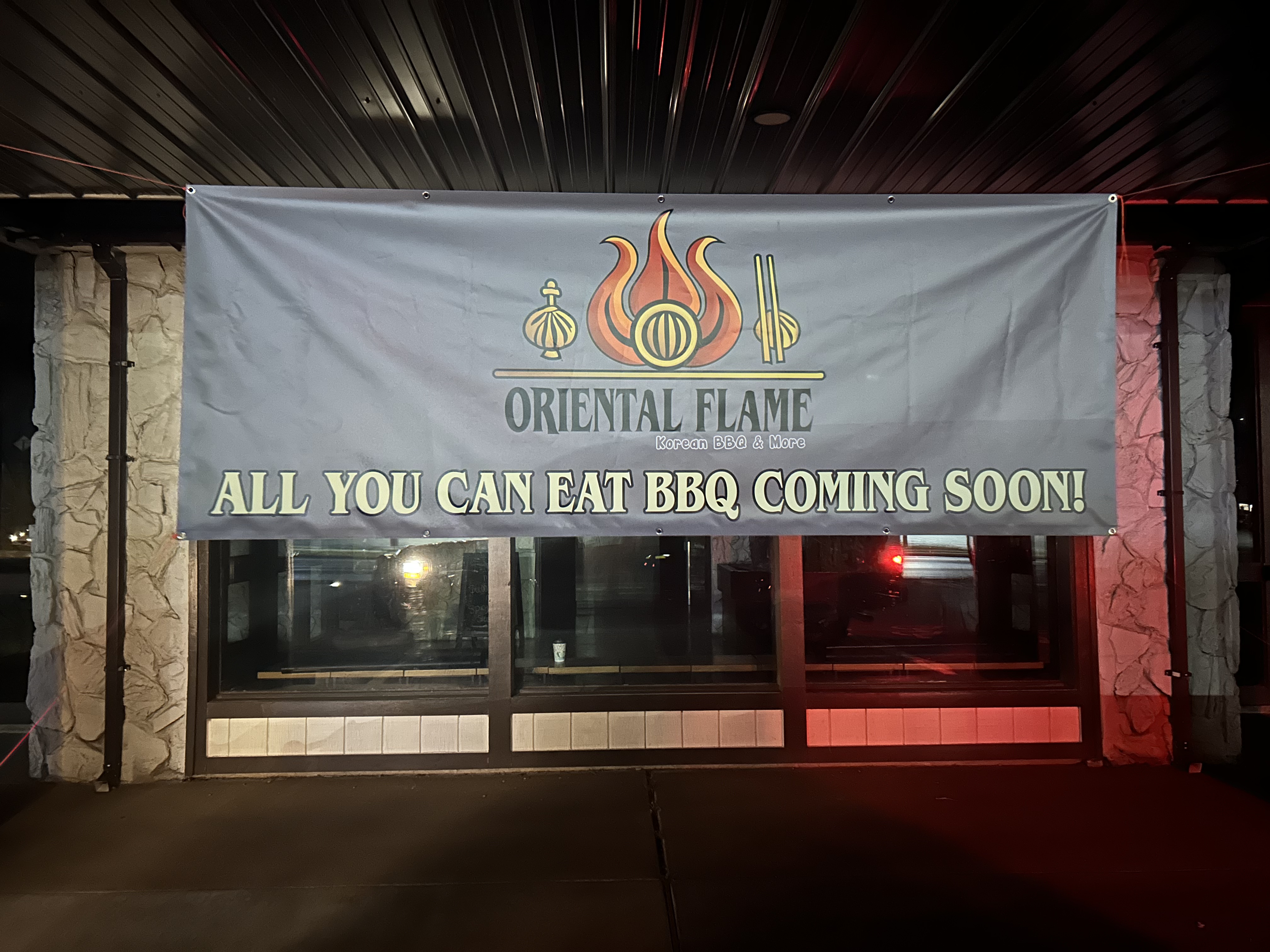A banner announcing “ALL YOU CAN EAT BBQ COMING SOON!” now hangs outside 4217 College Hills Blvd., the former location of GoGo GoGi Korean BBQ.