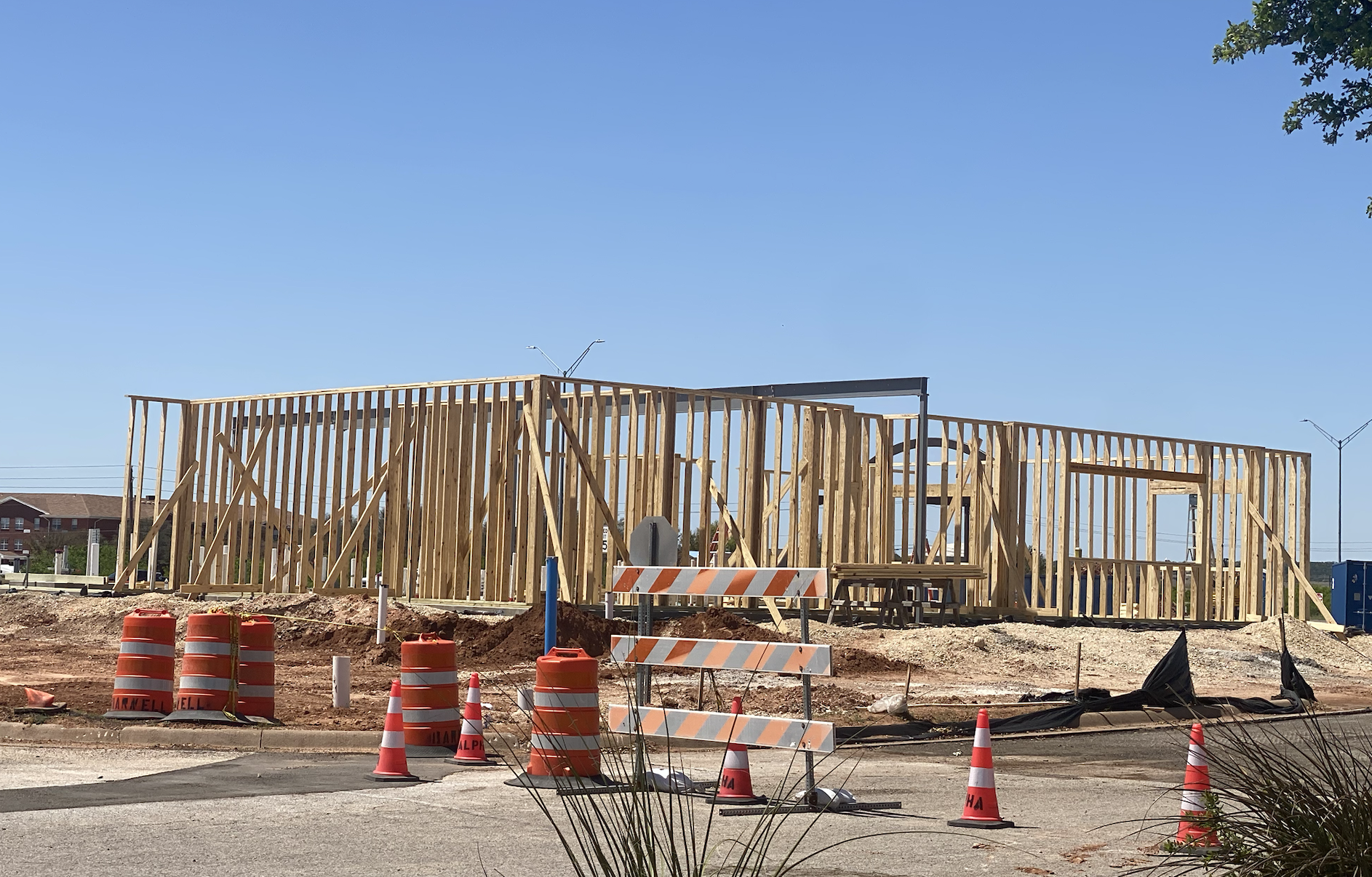 Longhorn Steakhouse is getting walls up after the plumbing and foundational work was complete. Many people have said the location looks small but, even with nearly two walls up, the building already looks bigger.