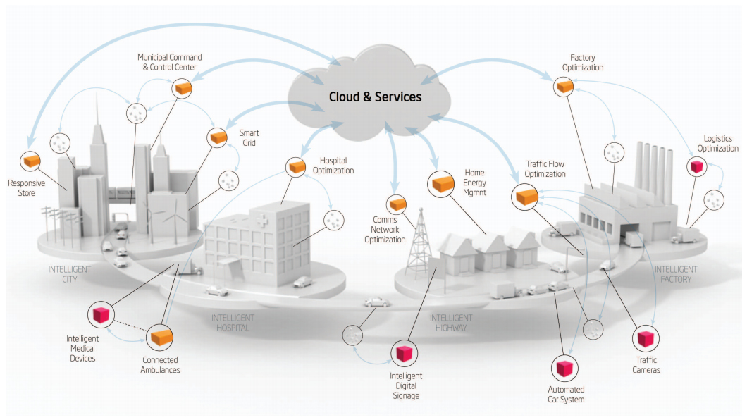 Smart grids and smart cities are being designed and machine to machine communication is becoming a reality. Someday, city streets will contain sensors that communicate with one another. Should one street be blocked off due to traffic, another route will be made available, and this all over the internet. You may receive a notification on your smartphone to take an alternate route to work that morning, or be woken up earlier to accommodate for time lost. The information will flow from machine to machine, device to device, without requiring human interaction. This is the type of future we are now designing for, says Bishop
