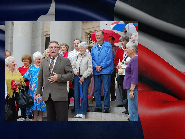 Running on over a decade of experience and refuted rumors of outsider residence, former County Commissioner Richard Easingwood announced his candidacy for County Judge on Monday morning to a small crowd of supporters on the Tom Green County Courthouse steps.