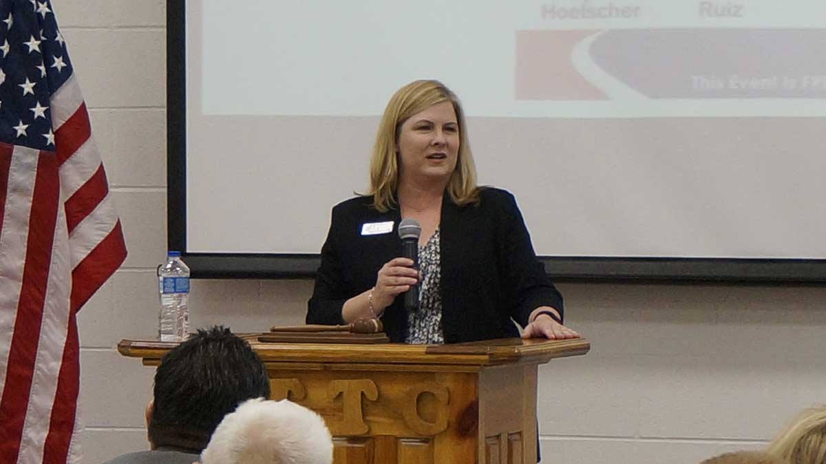 Dusek began her presentation apologizing to Goodwin for the campaign sign flap on Monday. “Some of you may have seen a news story that said I am accusing my opponent of breaking campaign laws,” she said.
