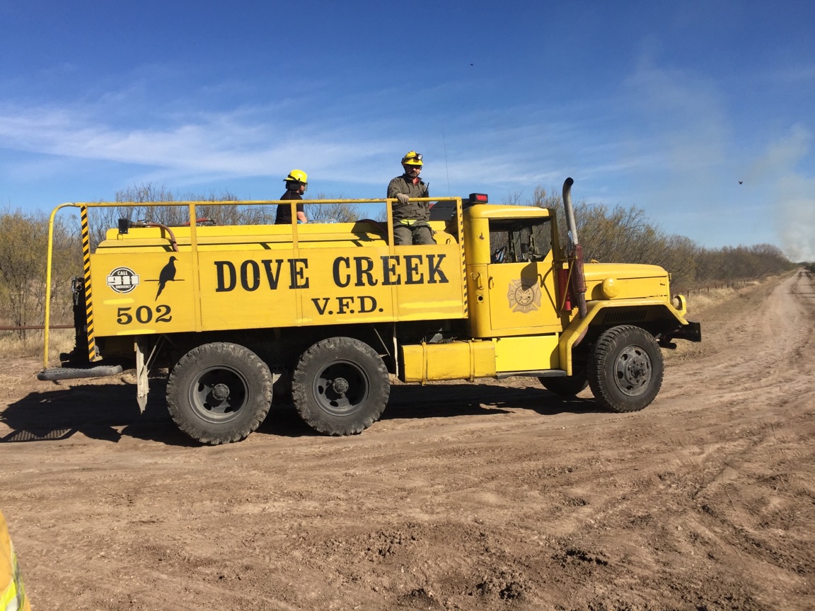 Firefighters from Pecan Creek, Dove Creek, Christoval and Grape Creek teamed up to battle the blaze as Tom Green County Deputies helped manage the scene and communicate with law enforcement agencies.