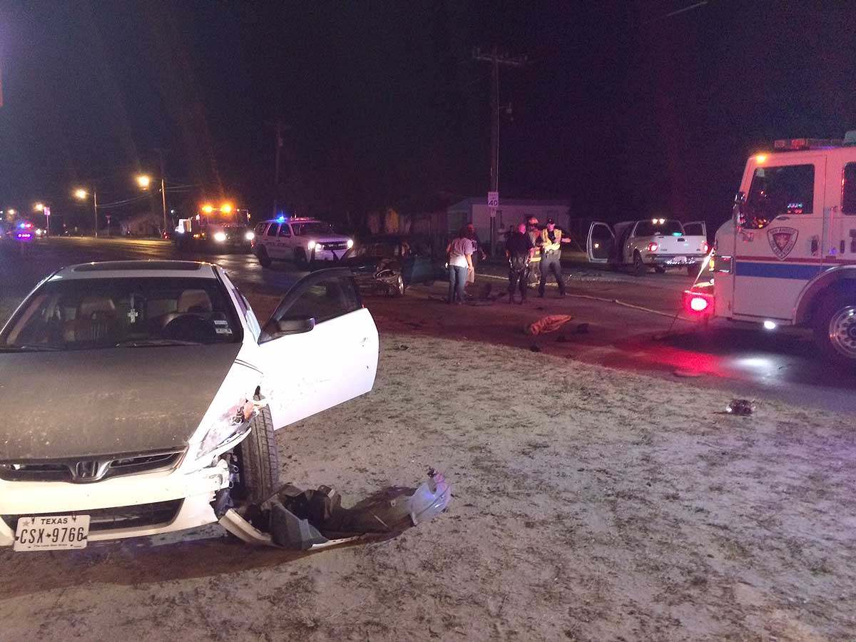 One person was sent to the hospital with minor injuries when a southbound white F-150 collided into the rear of a stopped southbound green Ford Taurus that was waiting to turn into Winger's Party Depot on North Bell Street. The F-150's impact to the Ford Taurus knocked the Taurus into the northbound lane just in time to be struck by a northbound white/black Honda Accord.