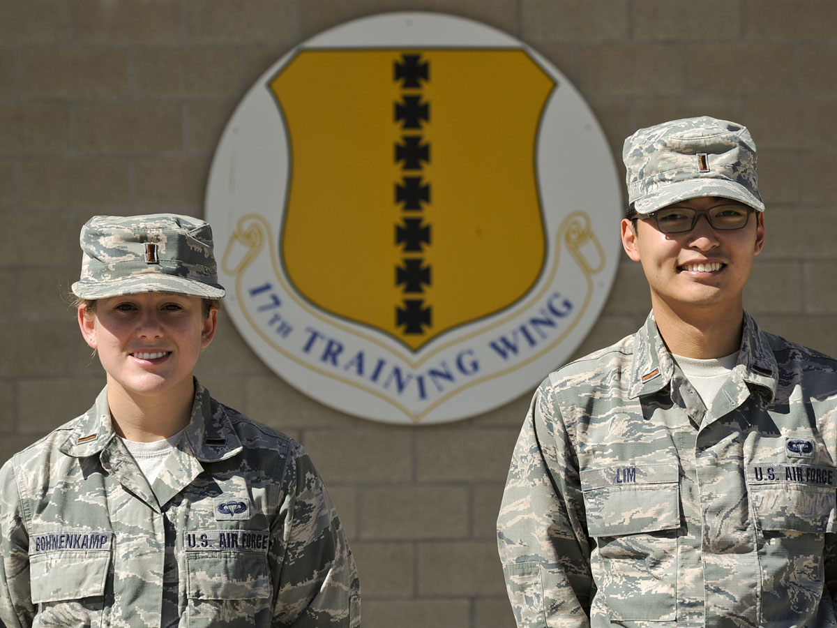 Airman 1st Class Devin Boyer reports that 2nd Lts. Emily M. Bohnenkamp and Andrew Lim, both 315th Training Squadron students, were to their way to workout when they spotted the tractor-trailer stretched across South Bryant early in the morning of Oct. 9. Next, they noticed that a Chevy S-10 pickup was crushed into the truck and stopped to investigate.