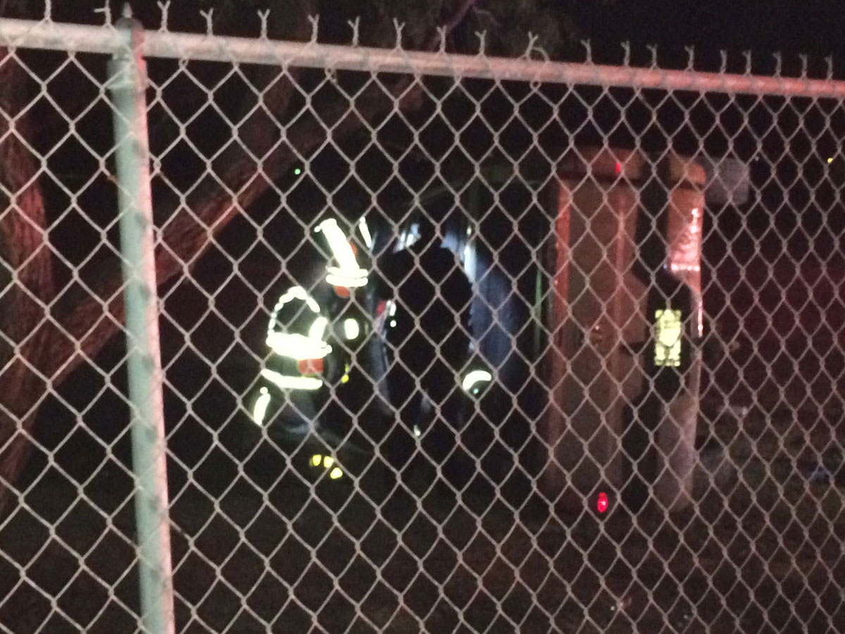 The crash tore down five segments of chain-link fence at the SACC and the truck can be seen sitting on its side near the fairway, well into Club grounds.