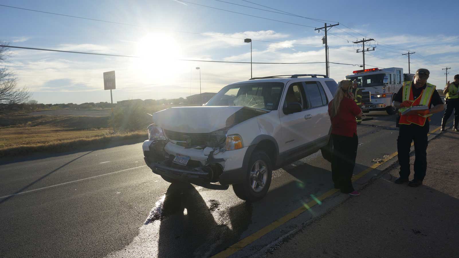 A Ford Explorer was exiting the Loop via the Southwest exit ramp. She told police that that she looked down momentarily and when she looked back up, it was too late to stop for traffic in front of her waiting to merge onto the frontage road.