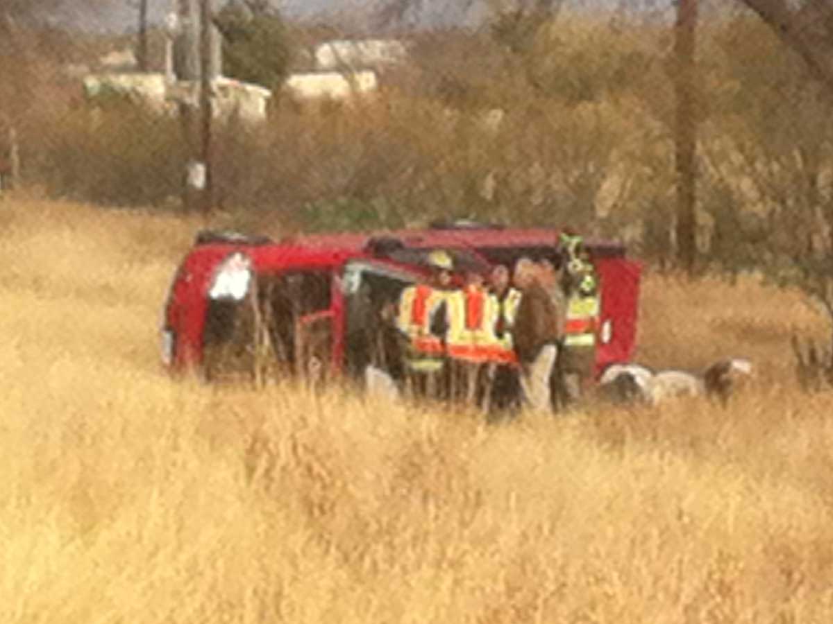A red Ford F-150 pickup full of cow pellets rolled over in a crash, spilling the precious cargo and trapping the driver. The crash happened on US 67 north, near the Rainey Rd. intersection, at approximately 3:50 p.m. Quail Valley VFD led the effort with assistance from San Angelo Fire Rescue to extract the farmer from the front windshield, because the truck came to a rest on the side with the driver’s door.