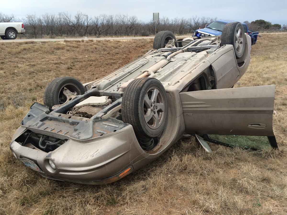 Next thing the black Camaro remembers is getting hit broadside and going into a side-skid. When the Camaro came to a stop, the driver looked back and saw the Pontiac rolled-over.