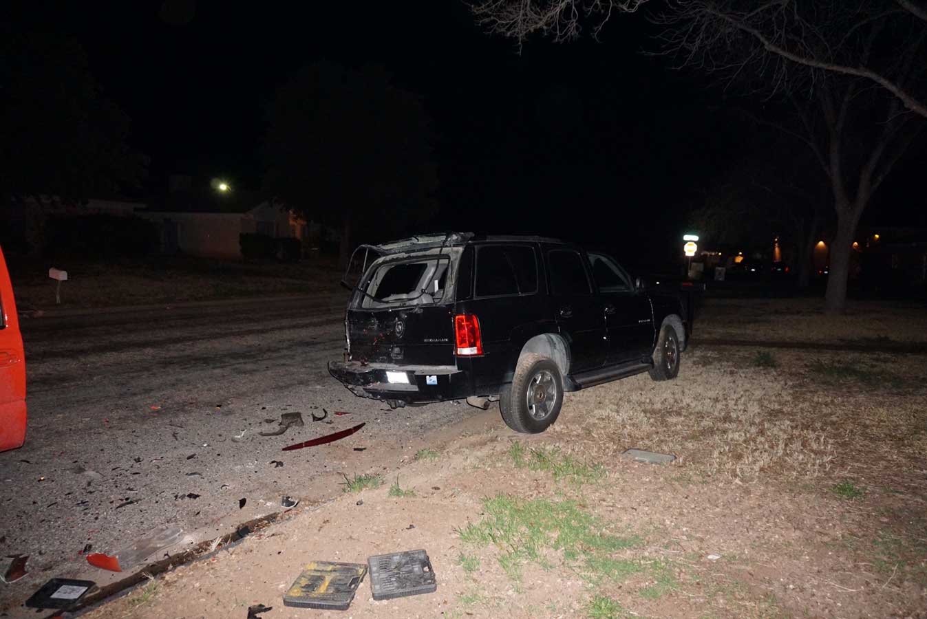 The orange pickup was travelling towards Southwest Blvd. on Rock Brook Drive when it rammed into the back of the Escalade.