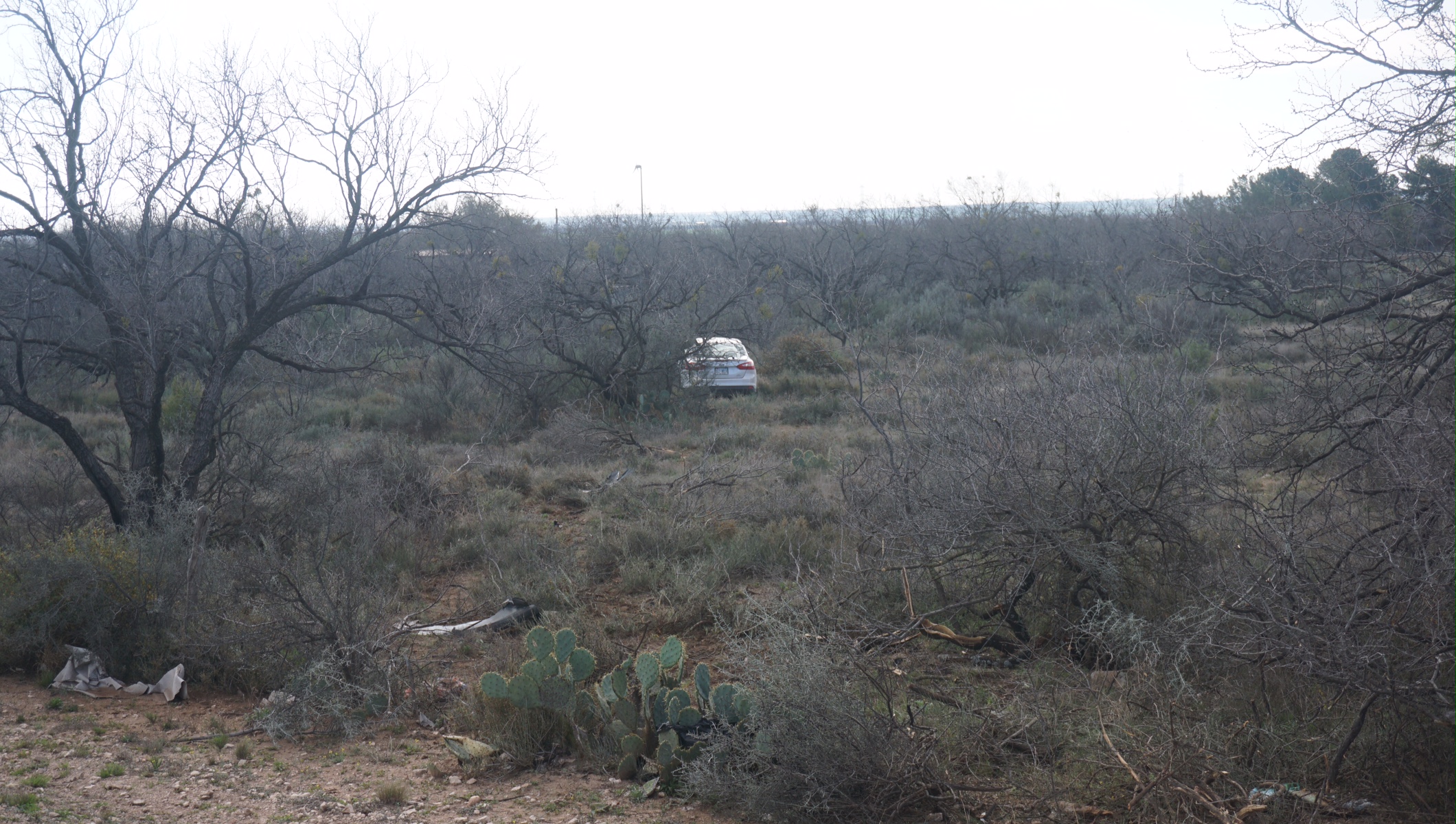 Texas DPS reported that a senior citizen driving a Ford Focus ran off U.S. 67 this morning and went on a trip through a field of Mesquite sprigs.