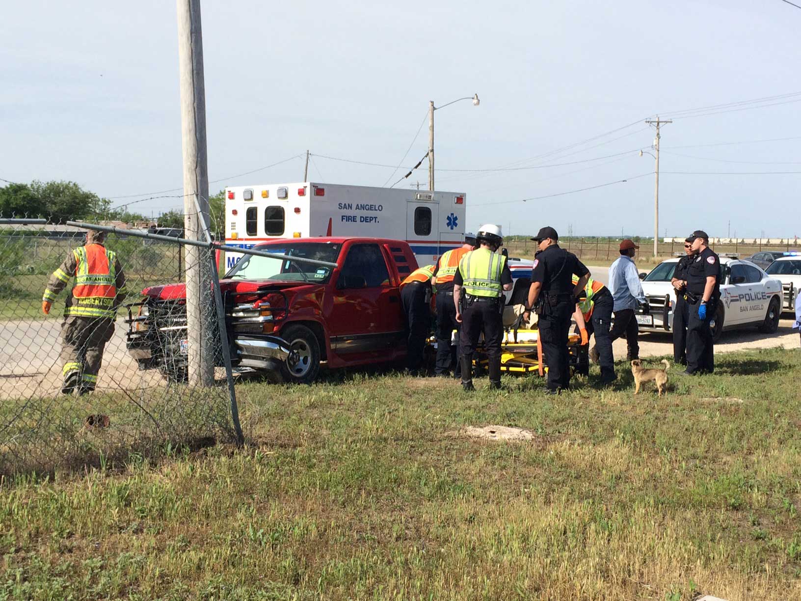 According to the San Angelo police, the driver and sole occupant of the truck took a sharp turn too wide and ended up burying the front of the truck into the pole. Police said there may have been a medical incident that caused the driver to turn wide.