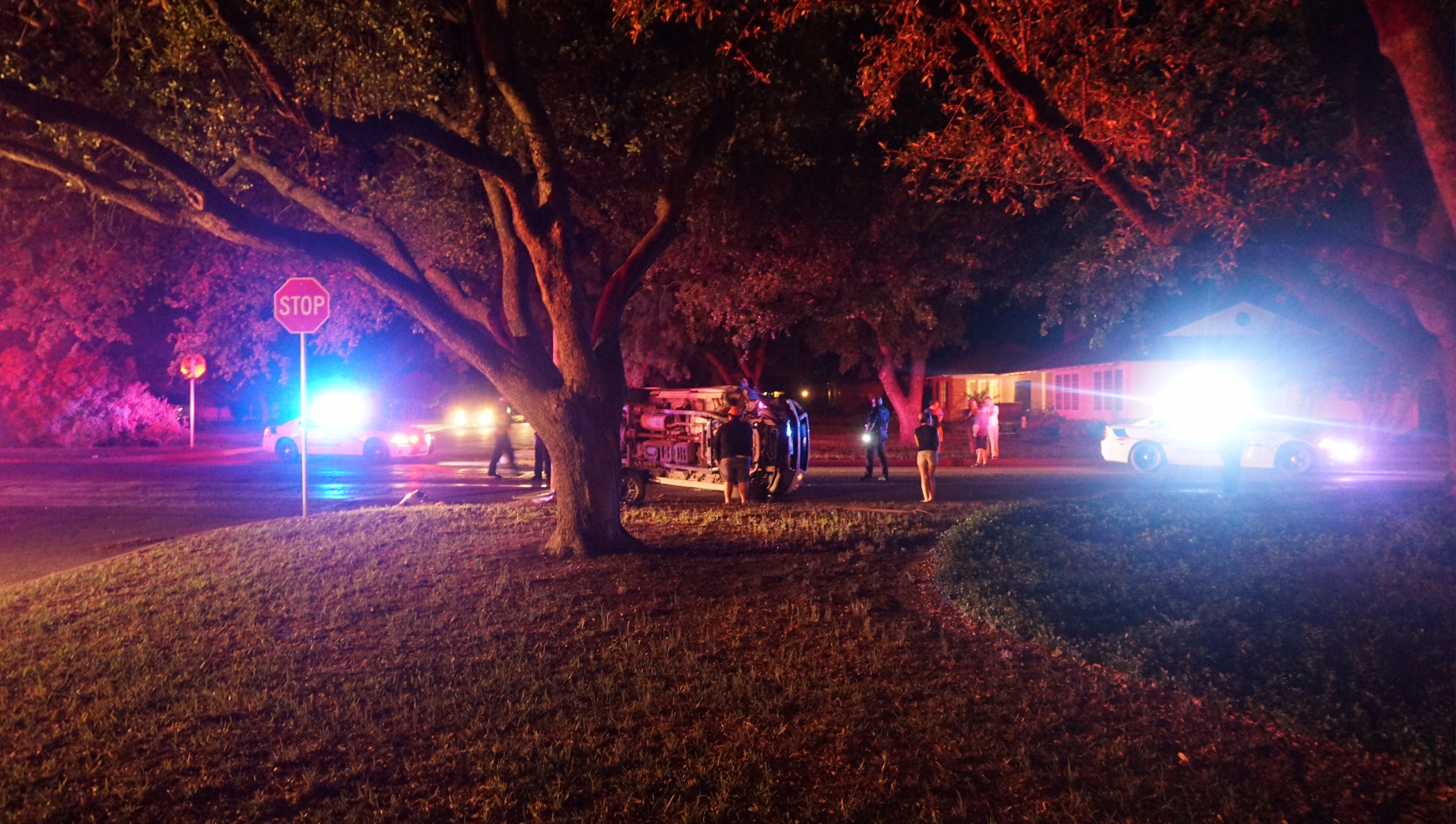 A rollover crash on S. Johnson Street almost brought down a power line.