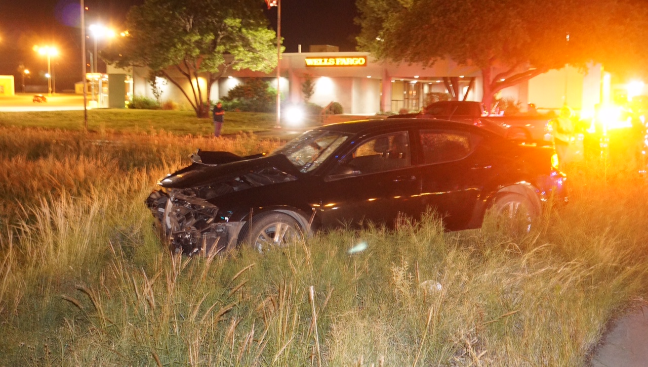 The Avenger came to a rest in the median between the northbound and southbound lanes.
