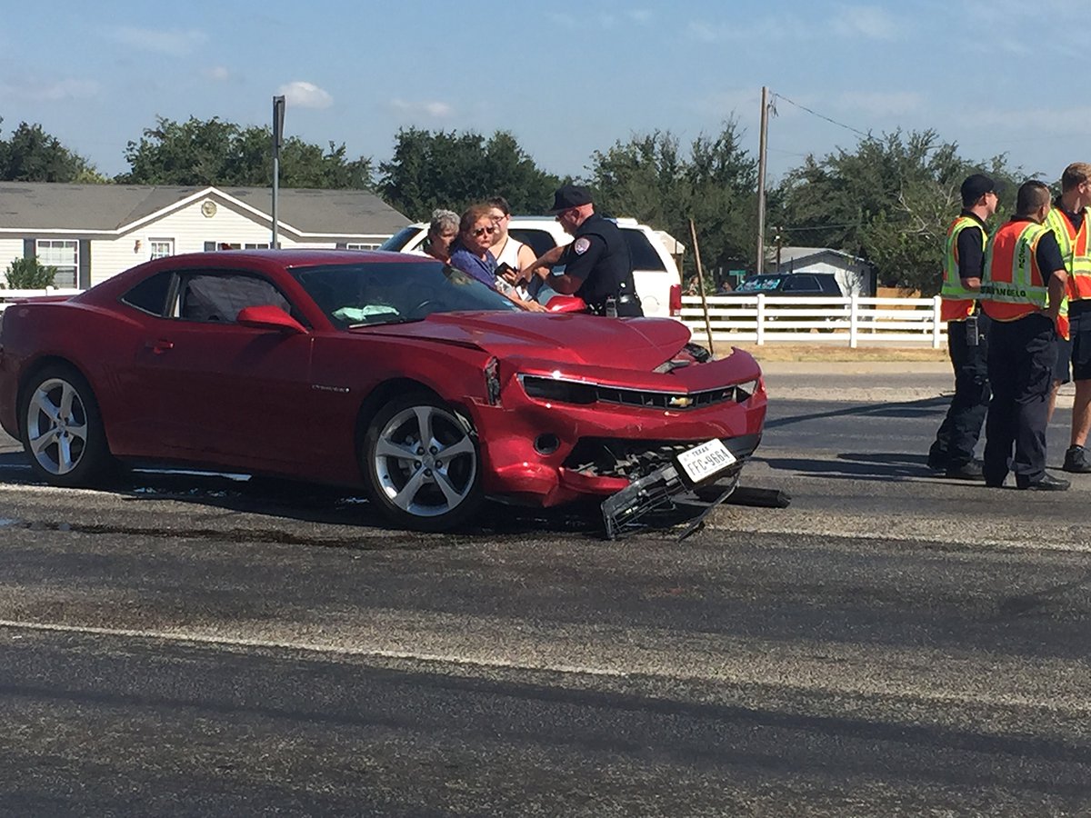According to the San Angelo police, a red 2015 Chevrolet Camaro was turning left off Christoval Rd. onto S. Chadbourne St. A gray 2015 Nissan Titan was southbound on Chadbourne. The Titan could not maneuver in time to avoid the Camaro.