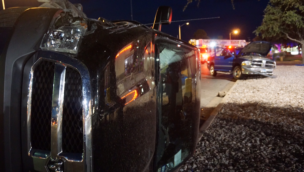 The driver of the black Dodge Ram performed evasive maneuvers, but to no avail. He ended up rolling the truck up on its side—the driver’s side, thus trapping the driver in the cab.