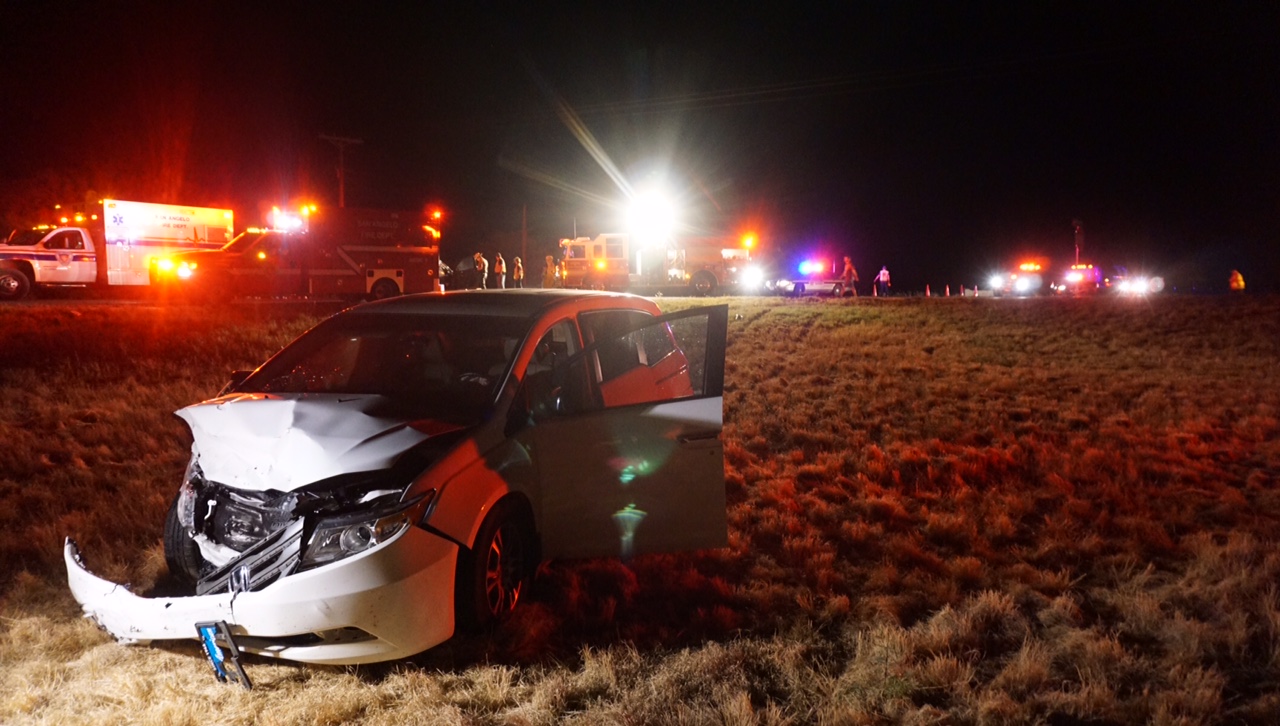 A dealer-plated Honda Odyssey with an adult female driver and five kids inside was destroyed and some of the occupants injured. It happened when a black Toyota Camry pulled out in front of the Odyssey traveling at highway speeds on U.S. 87 in Grape Creek Wednesday night.