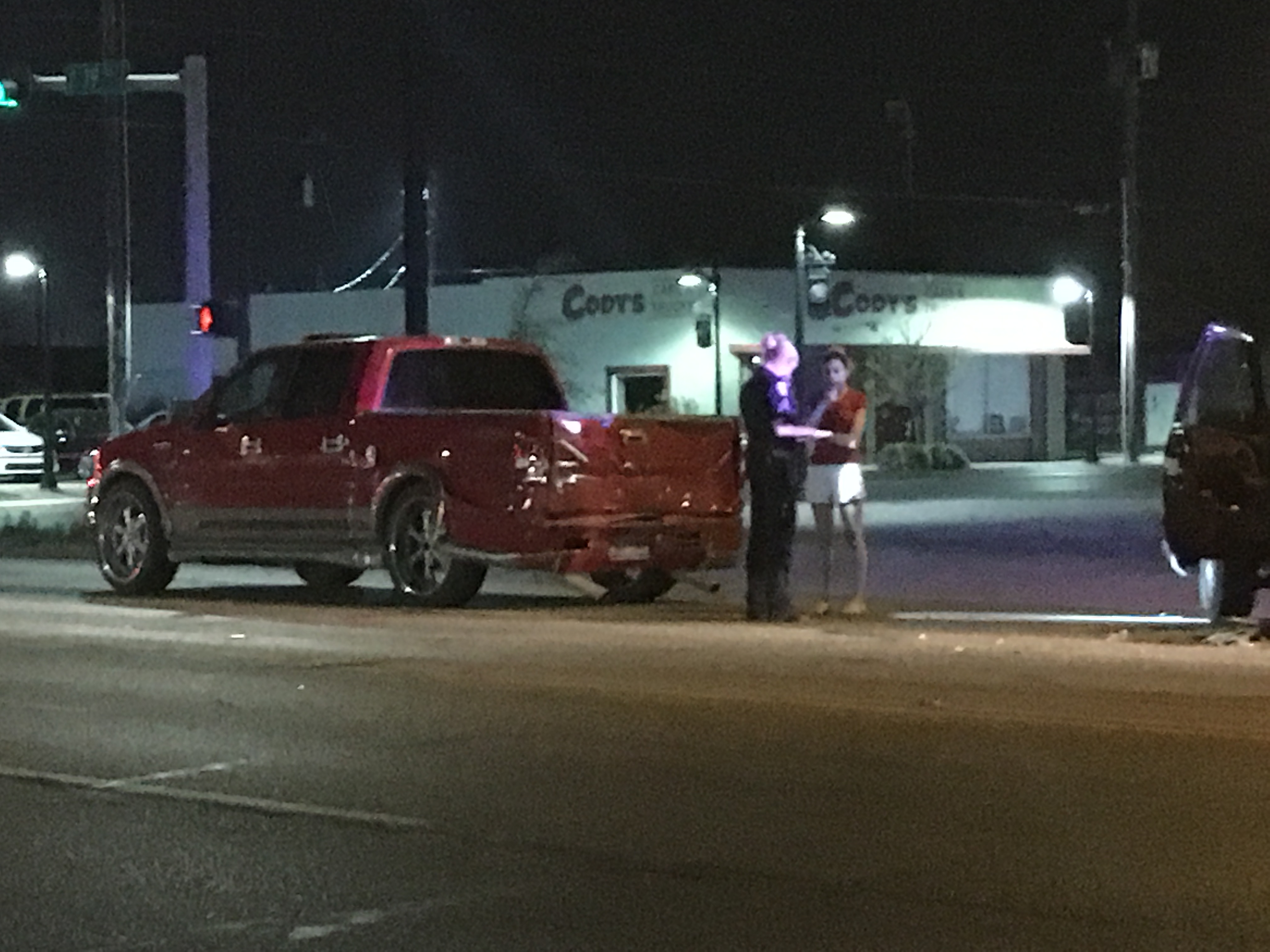 Police determined that the driver of the red Chevy that started the three-vehicle crash was intoxicated, and he was booked and sent to the Tom Green County Jail.