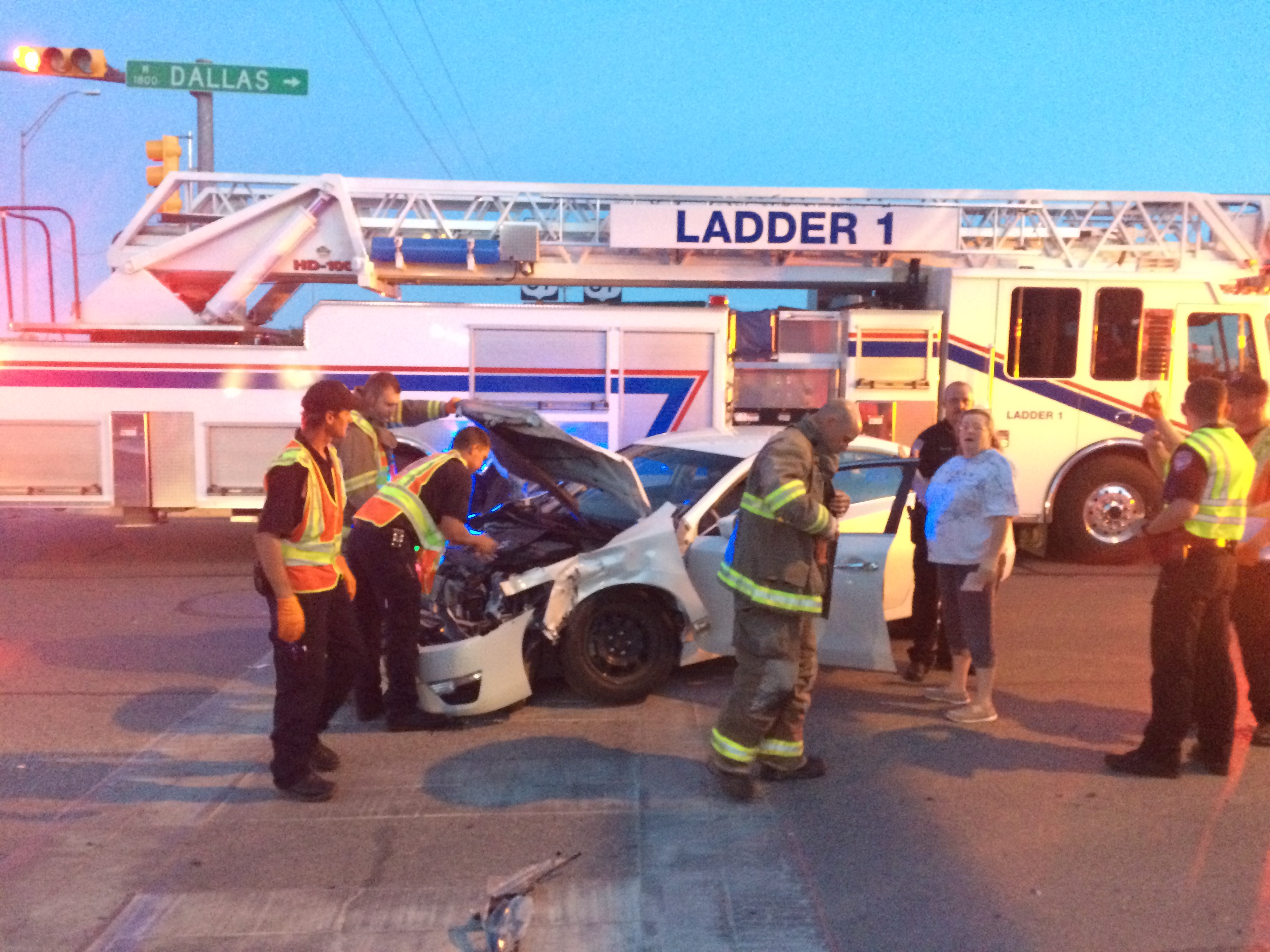 There was a two-vehicle crash in the middle of the intersection of N. Van Buren and Dallas at approximately 9 p.m.