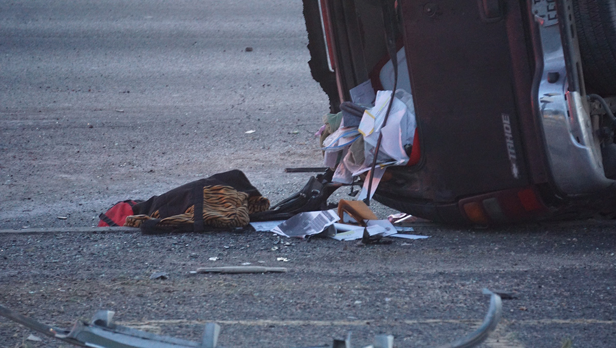 Solsbery confirmed only one vehicle was involved in the crash. The Tahoe ran up on a curb on the east side of the road (right side) that caused it to roll over into the outside lanes of traffic. Solsbery said speed was definitely a factor. And there was more.