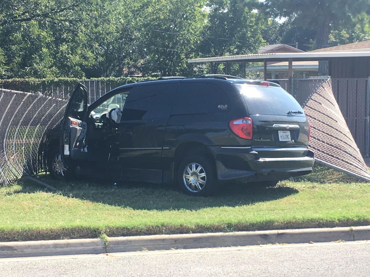 SAN ANGELO, TX — A driver of a black Cadillac sedan caused a crash on Sherwood Way that sent a Chrysler Town & Country minivan into a fence of a residence, police said.