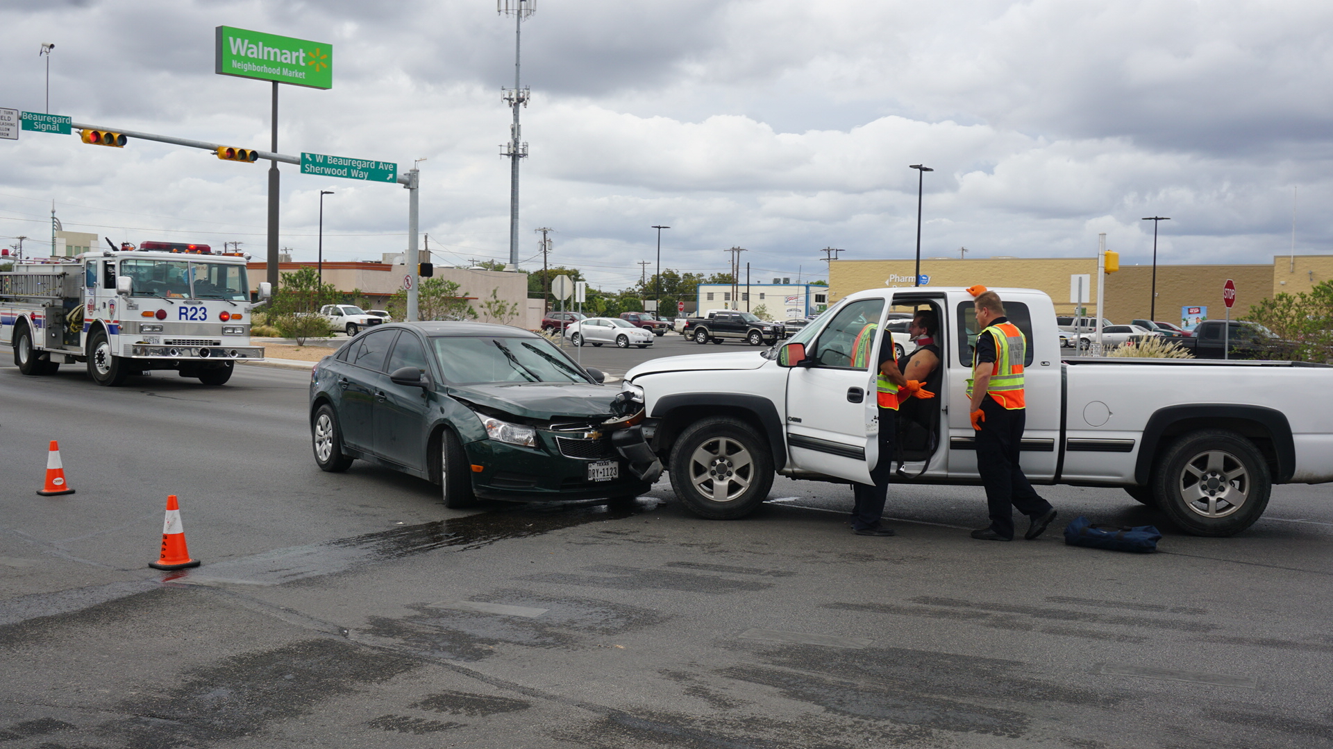 According to San Angelo Police Department Traffic Investigator Brian Bylsma, a green 2014 Chevy Cruze was eastbound on Sherwood Way and claimed she had a solid green light when a white 2000 Chevrolet pickup turned in front of her, causing the collision.