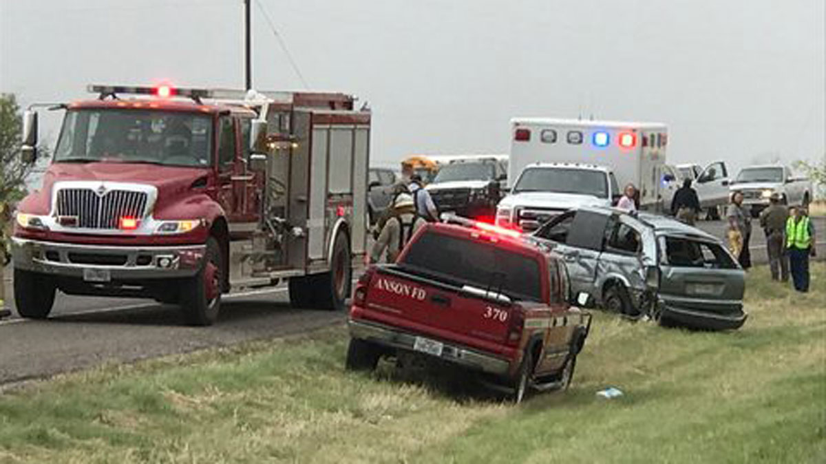 KTXS out of Abilene has a reporter there where the Anson Fire Department is tending the scene. They report that the vehicle, a hatchback, had three souls onboard. The third occupant was rushed to the hospital with injuries.