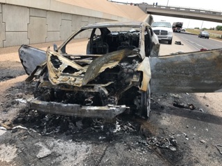 SAN ANGELO, TEXAS -- Shortly before 2 p.m. this afternoon, a four-door sedan became engulfed in flames in the 200 Block of West Houston Harte under the Howard Street underpass.