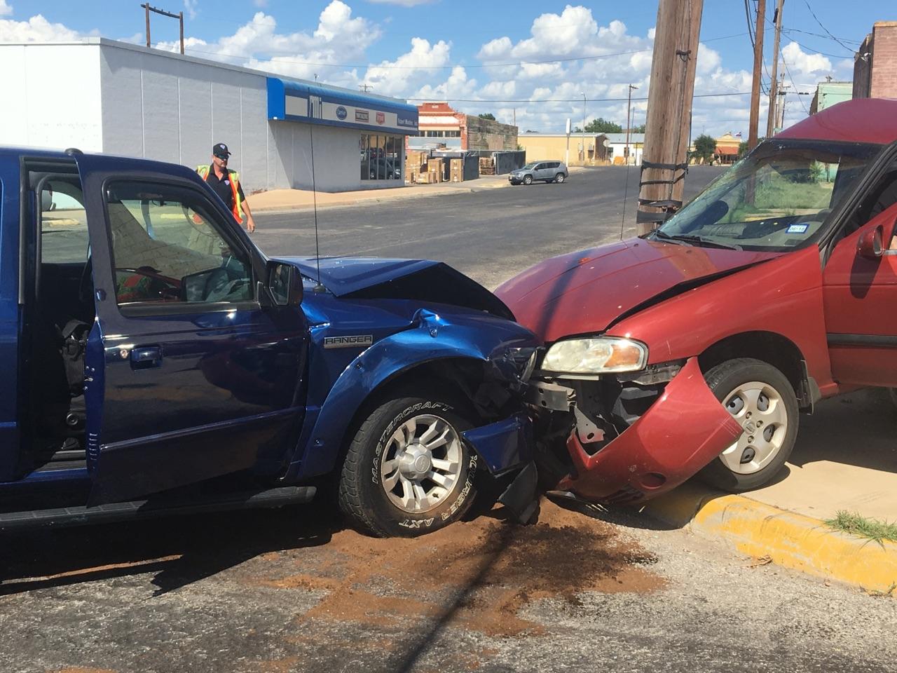 SAN ANGELO, TX – A late afternoon crash at the intersection of Irving Street and Avenue B sent two vehicles spinning out of control.