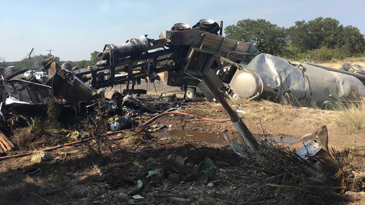 The Brady Standard-Herald photos showed a large area where a fire was still smoldering next to the roadway where the crash scene was.